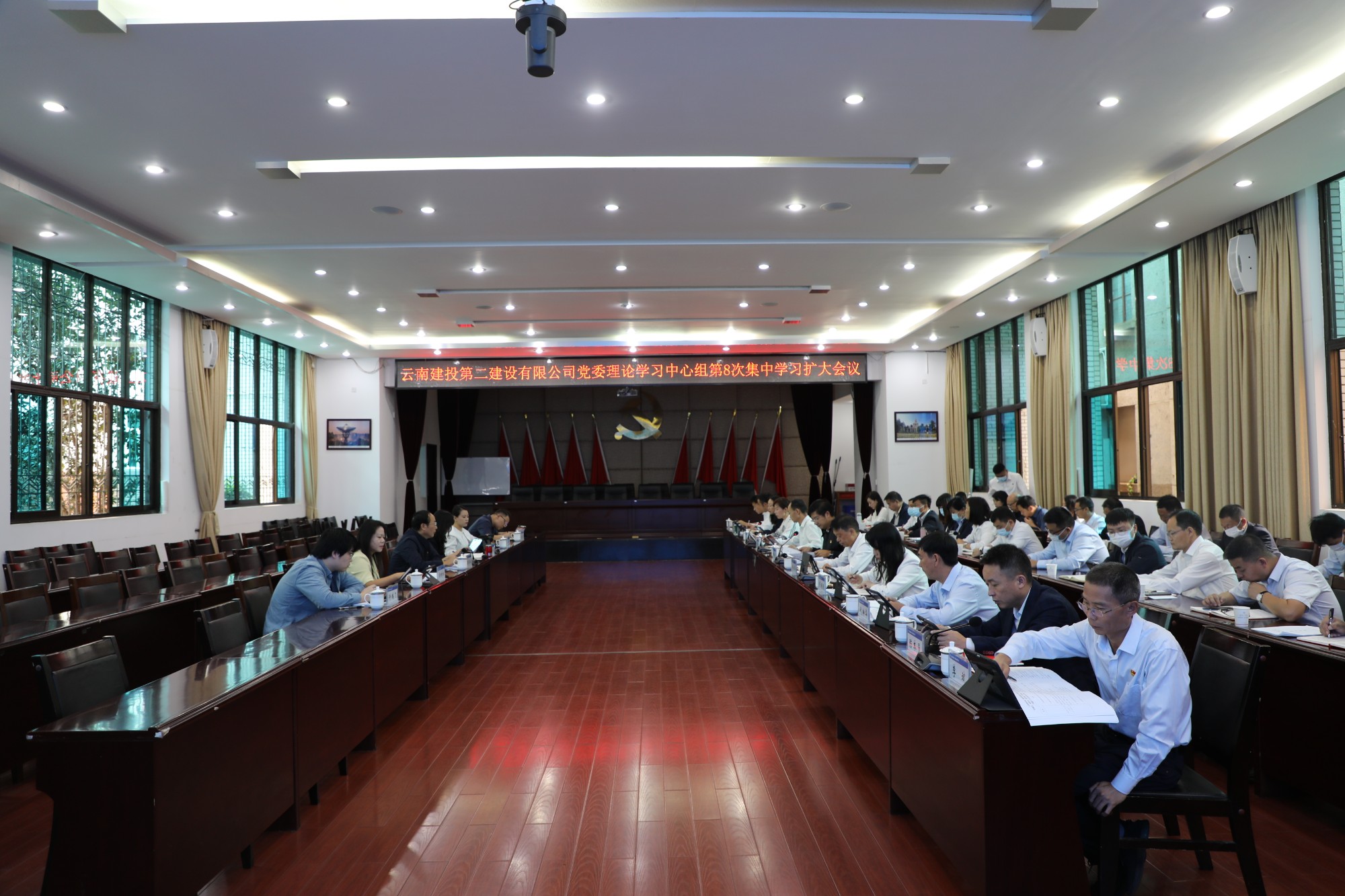9月20日上午,公司黨委召開(kāi)2022年理論中心組第8次集中學(xué)習(xí)擴(kuò)大會(huì)議,集團(tuán)黨委理論學(xué)習(xí)中心組列席旁聽(tīng)第二組副組長(zhǎng)、總承包公司黨委書(shū)記、副董事長(zhǎng)李曙斌攜集團(tuán)黨委理論學(xué)習(xí)中心組列席旁聽(tīng)第二組成員出席會(huì)議,公司領(lǐng)導(dǎo)班子、擴(kuò)大班子成員,職能部門負(fù)責(zé)人,部分黨支部書(shū)記參加會(huì)議,會(huì)議由公司黨委書(shū)記、副董事長(zhǎng)萬(wàn)向遵主持。