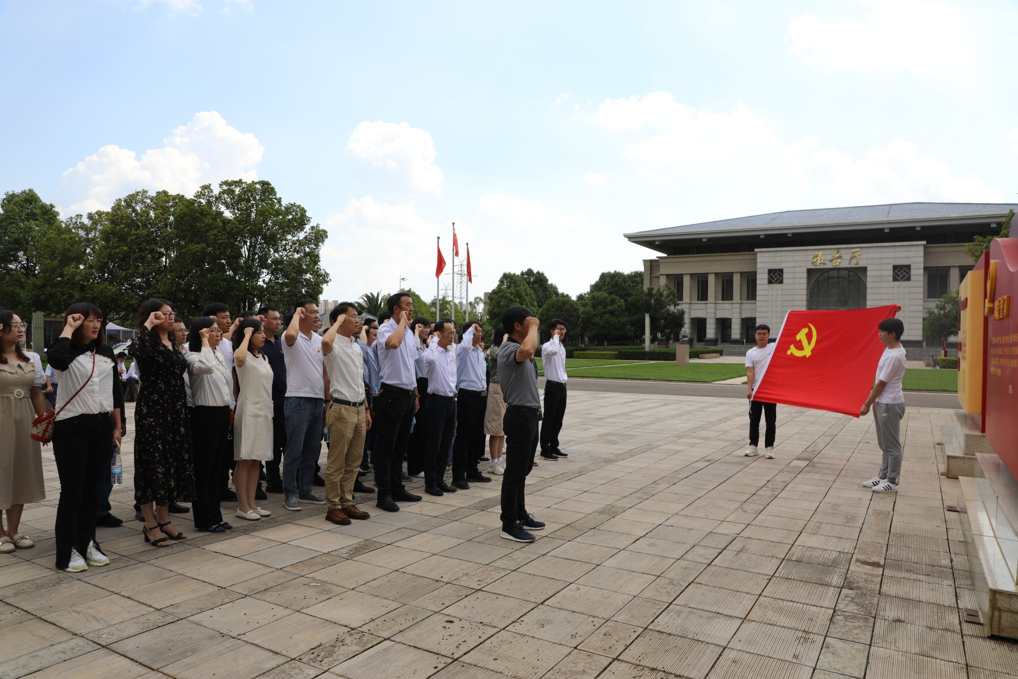 參觀結(jié)束后,全體人員在公司黨委書記、副董事長萬向遵的帶領(lǐng)下重溫了入黨誓詞。短短80字的誓詞,也讓全體黨員更加銘記初心、牢記使命。